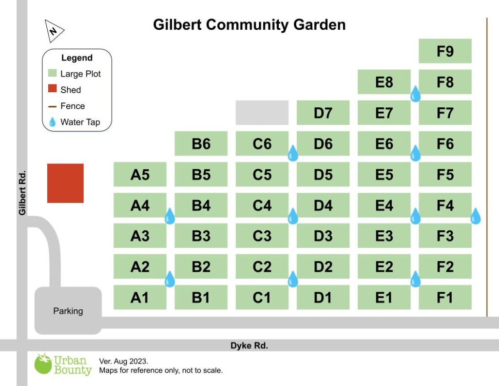 Gilbert Road Community Garden is located at the South end of Gilbert Road.